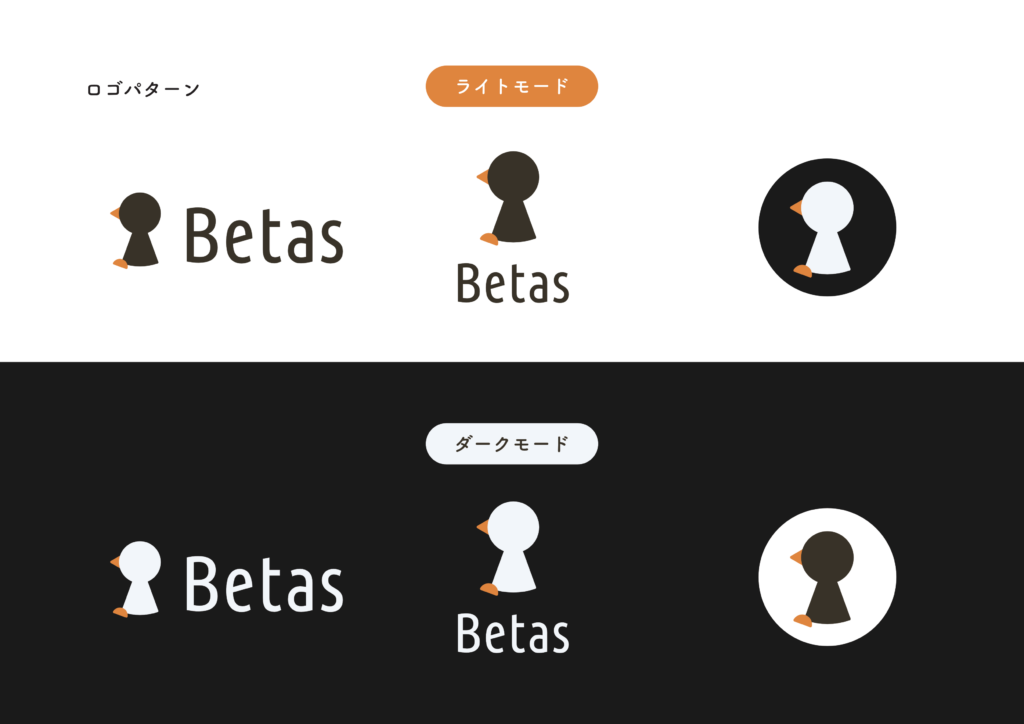 本ロゴは、ブランド名の由来であるフェニキア文字の「ベート(βの語源)」を起点に設計しました。ベートの字形から着想を得た「ペンギン」をモチーフとし、過酷な環境に適応し進化を遂げたその生態を、企業理念である「社会との共創による進化」に重ねています。あえて「子どものペンギン」として描くことで、常に新たな挑戦を止めない「成長のポテンシャル」を表現。また、胴体部に配置した「鍵穴」のシルエットは、ベータ版の本質である「課題(鍵穴)を的確に捉え、解決策(鍵)を導き出す」というプロセスを象徴しています。社会という変化し続ける鍵穴に対し、常に最適な解を提示し続ける姿勢を、親しみやすさと知性を併せ持つ造形でパッケージングしました。